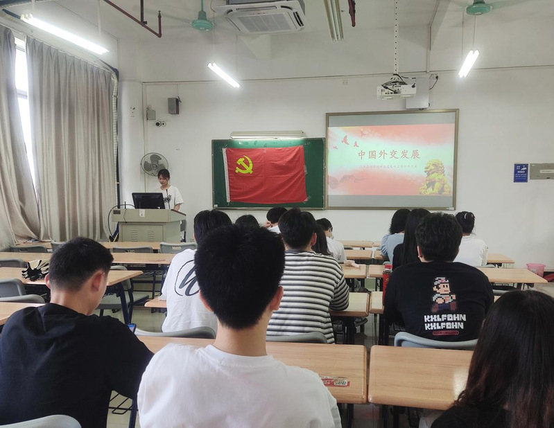 介绍中国外交发展 接下来,宣传部李贤柔同志对中国外交发展进行介绍,引导我们在探索中、在理论创新中掌握新理论,了解形势与政策和正确认识国内外形势,培养“跟党走,立志民族复兴,争做强国先锋”的远大志向!