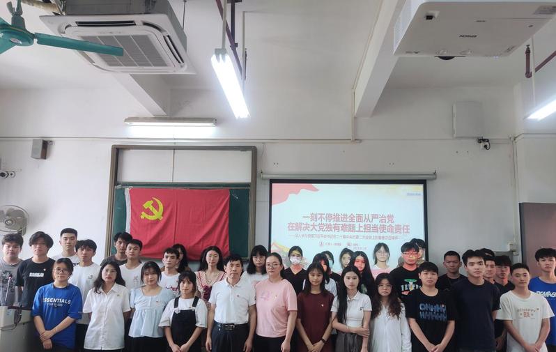 学习会现场 刘彩云带领大家一起学习了习近平广东考察时的重要讲话重要指示精神。习近平在广东考察时强调要锚定强国建设、民族复兴目标,围绕高质量发展这个首要任务和构建新发展格局这个战略任务,在全面深化改革、扩大高水平对外开放、提升科技自立自强能力、建设现代化产业体系、促进城乡区域协调发展等方面继续走在全国前列,在推进中国式现代化建设中走在前列。身处粤港澳大湾区的我们,要加强学习,锻炼成才,夯实技术技能,为粤港澳大湾区成为新发展格局战略支点、高质量发展示范地、中国式现代化引领地贡献力量。 在学习会上,组织部陈海昌同志通过主题《一刻不停推进全面从严治党,在解决大党独有难题上担当使命责任》向我们介绍习近平总书记在二十届中央纪委二次全会上的重要讲话精神。新时代十年,党中央把全面从严治党纳入“四个全面”战略布局,我们党不断深化对自我革命规律的认识,不断推进党的建设理论创新、实践创新、制度创新,初步构建起全面从严治党体系。全面从严治党永远在路上,要时刻保持解决大党独有难题的清醒和坚定。