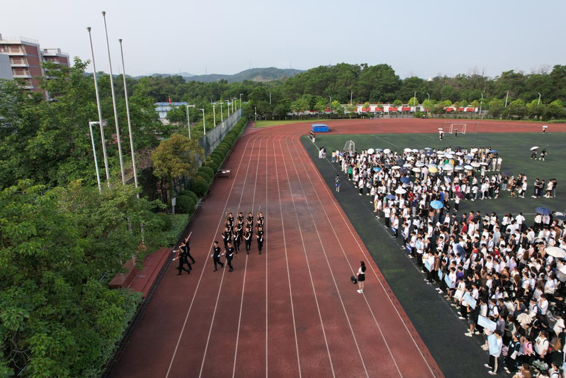 为加强习近平新时代中国特色社会主义思想在广大师生心中的认知,学习贯彻党的二十大精神,落实《新时代爱国主义教育实施纲要》,让爱国主义精神深深嵌入在广大青年学生心中,2023年5月22日上午,汽车工程学院全体师生在白云校区田径场举行升国旗仪式,仪式由院团委主席龙晓雯主持。