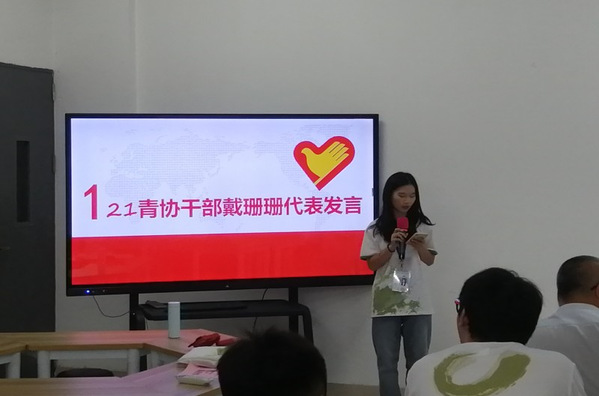 副秘书长戴珊珊代表发言 接着,22级全体干事上台依次汇报竞选,分别从自我介绍、岗位认知、竞选优势、工作总结和工作展望等多项内容展开演讲,每位成员都表达出自身对志愿历程的经验以及感想,并表示将以实际行动为青协增光添彩。大会秉着公平、公正、公开的原则,新晋干部名单将会在后续阶段公开。