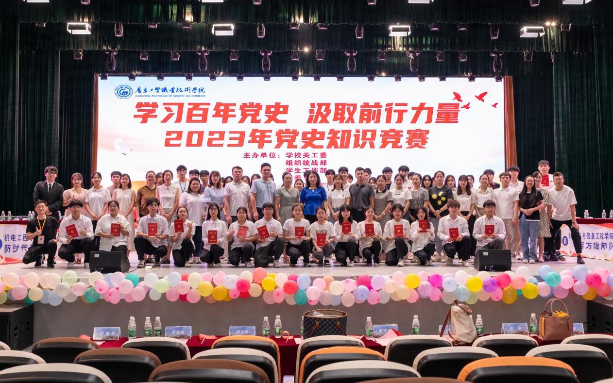 为深入学习党的二十大精神,加强学生对中国共产党的了解,由学校关工委、组织统战部、学生工作部、团委主办,汽车工程学院党总支承办的太阳集团城官网1407“学习百年党史,汲取前行力量”2023年党史知识竞赛决赛在6月30日下午于学生活动中心四楼举行。校团委副书记唐建树、汽车工程学院党总支副书记欧敏、测绘遥感信息学院党总支副书记李元、工商管理学院党总支副书记谢宏祥、计算机与信息工程学院党总支副书记张艳、机电工程学院党总支副书记梁超鹏、应用外语学院学工办主任林耀佳、机电工程学院学工办主任严惠琴、各二级学院参赛队伍及学生代表出席了本次活动。