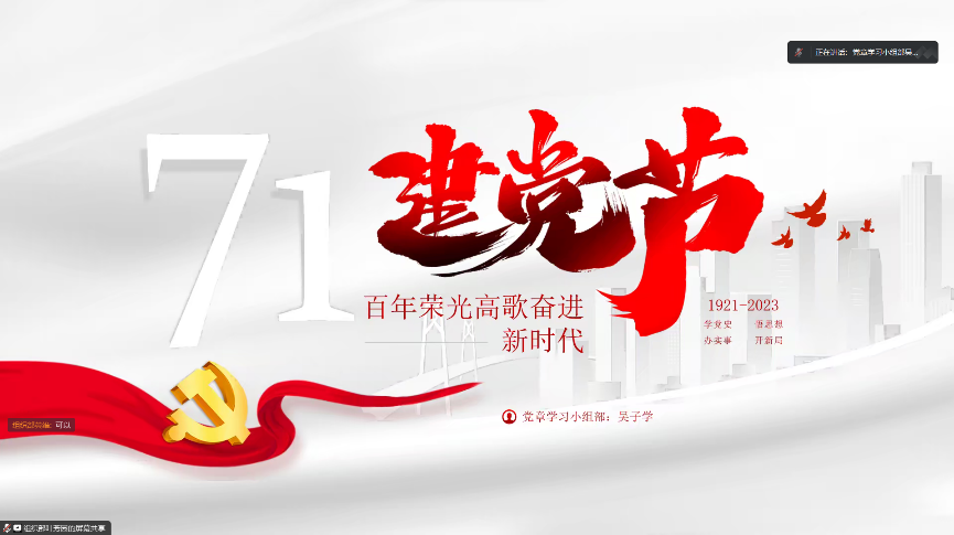 紧接着,支部党员吴子学同志作主题发言。他分别从三个部分为我们讲解:建党百年,站位决定方位,胸怀信念永存高远之志;建党百年,格局决定结局,提高本领打牢成才之基;建党百年,思路决定出路,勇于担当走好奋斗之路。