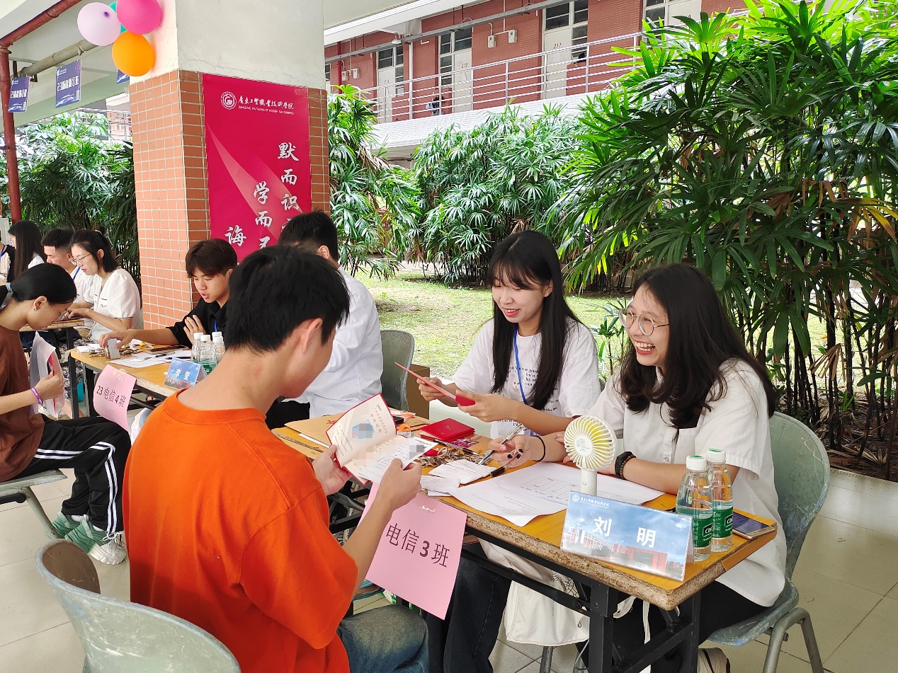迎新当天,学生党员身穿我院志愿者马甲,帮助新生搬运行李,引导新生到达宿舍楼,为2023级新同学提供热情周到的暖心服务。学生党支部将新生挂钩党员组成一支志愿队伍,协助新生助班迎接并办理新生们的入学相关手续,积极做好服务工作,切实将“我为群众办实事”落实落细。在迎新活动区域,设立了活动,对自己未来的大学生活的期待,对家人的祝福等等,写下自己的心愿和祝福。