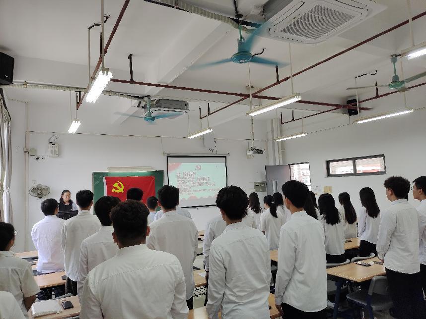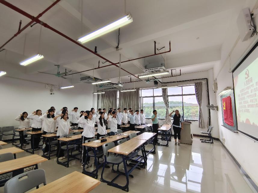 为了进一步提升新发展党员的党员意识和党性修养,2023年9月12日下午14:15,汽车工程学院学生党支部在明德楼1-607举行了入党宣誓仪式。参加此次会议的有:汽车工程学院党总支书记彭卫东、学生党支部书记刘彩云以及支部全体在校党员,此次会议由刘彩云同志主持。 会议伊始,刘彩云同志致辞并宣读参加宣誓仪式的新党员名单。随后,入党宣誓仪式在庄严的《国际歌》中正式开始,全体党员在雄浑昂扬的旋律中起立肃穆。