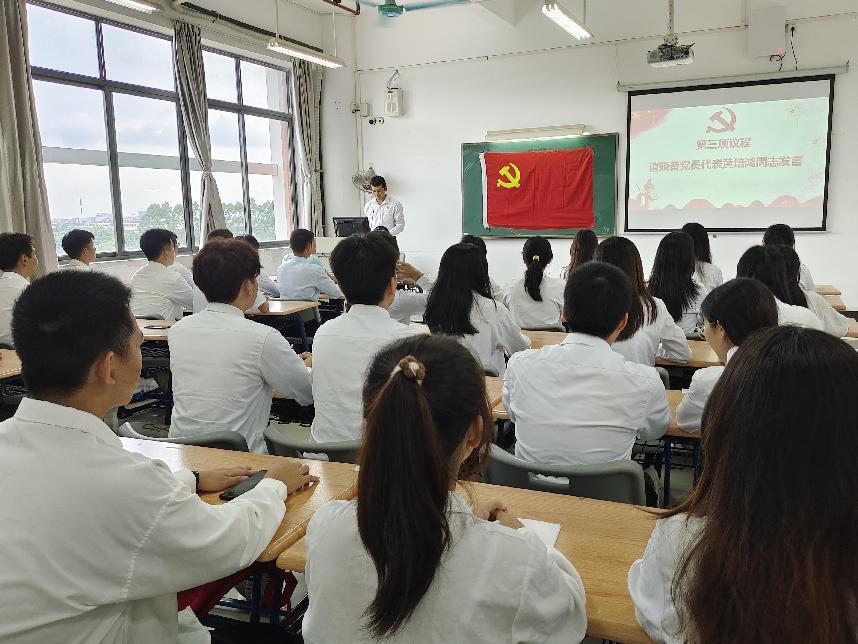 预备党员宣誓、党员重温誓词 其次,预备党员代表黄培鸿同志上台发言,他表示,要成为一名合格的共产党员,不仅要有正确的政治认知,扎实的知识基础,还要勇于去实践,把党的思想贯彻到自己的学习生活中。成为预备党员是一种荣誉和责任,也是一种成长和进步。