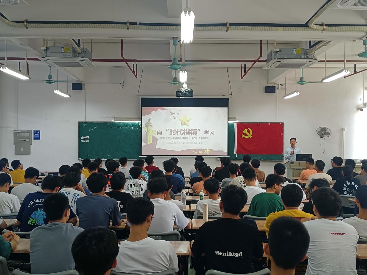为了学习贯彻党的二十大精神,增强思想政治教育,加强党的相关知识的普及,9月19日下午2点,太阳集团城官网1407“学生党史宣讲团”成员王豪在明德楼2区402给23新能源3班和23新能源4班宣讲向时代楷模学习。