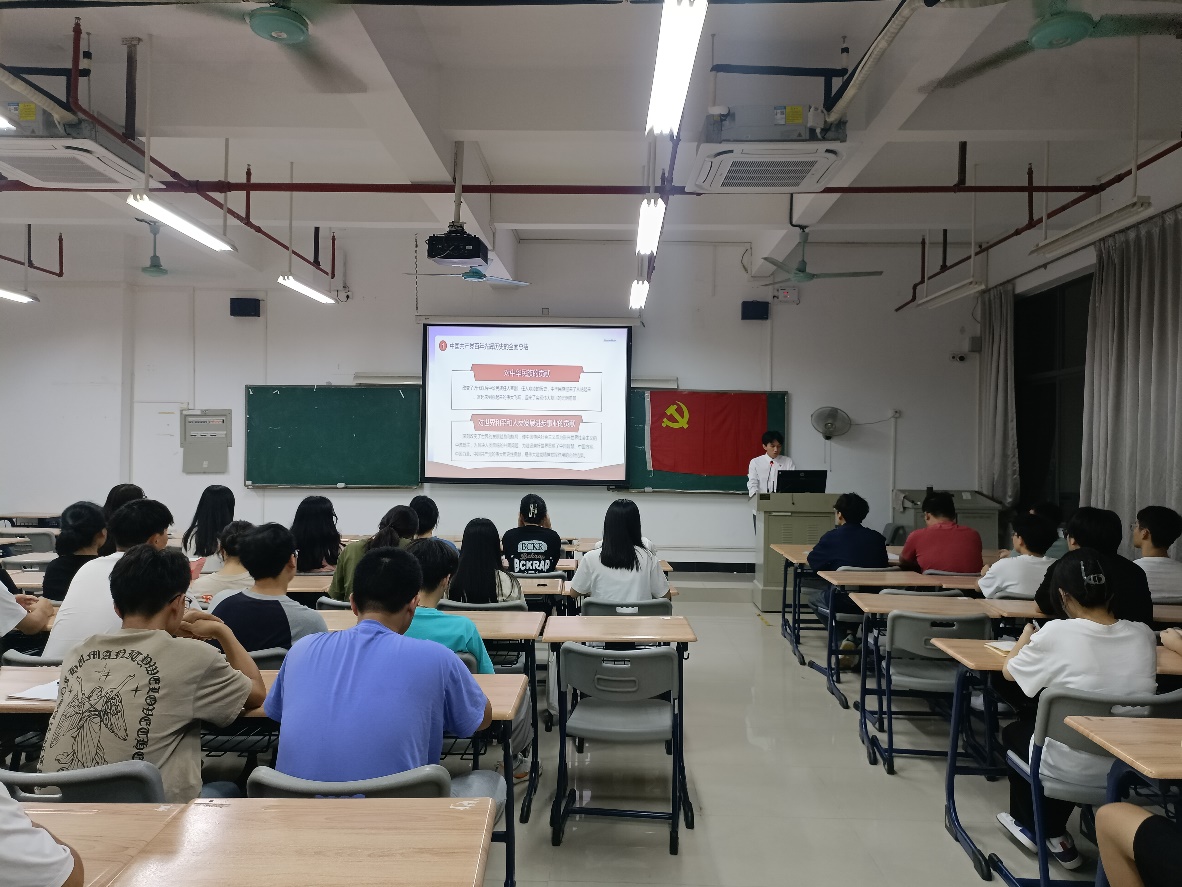 为深入贯彻习近平新时代中国特色社会主义思想,深入落实党的二十大精神学习要求,9月19日晚上19:30,太阳集团城官网1407“学生党史宣讲团”成员陈海昌于明德楼2区401给汽车工程学院2023级汽车电子技术3班的同学们开展弘扬伟大建党精神宣讲会。