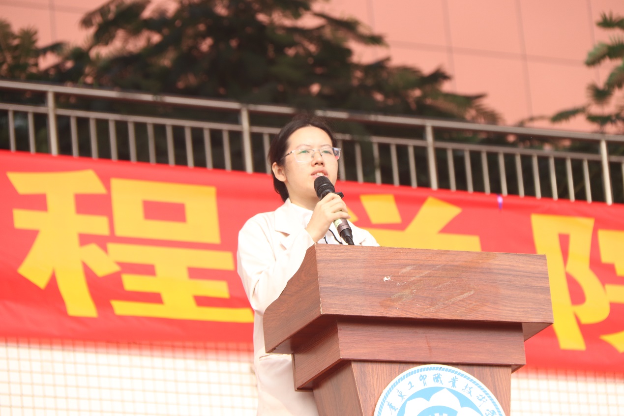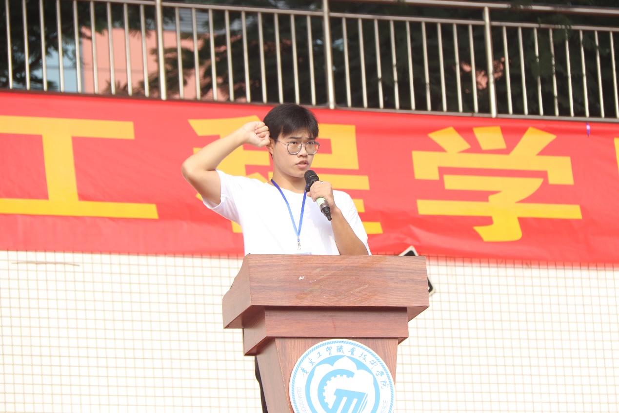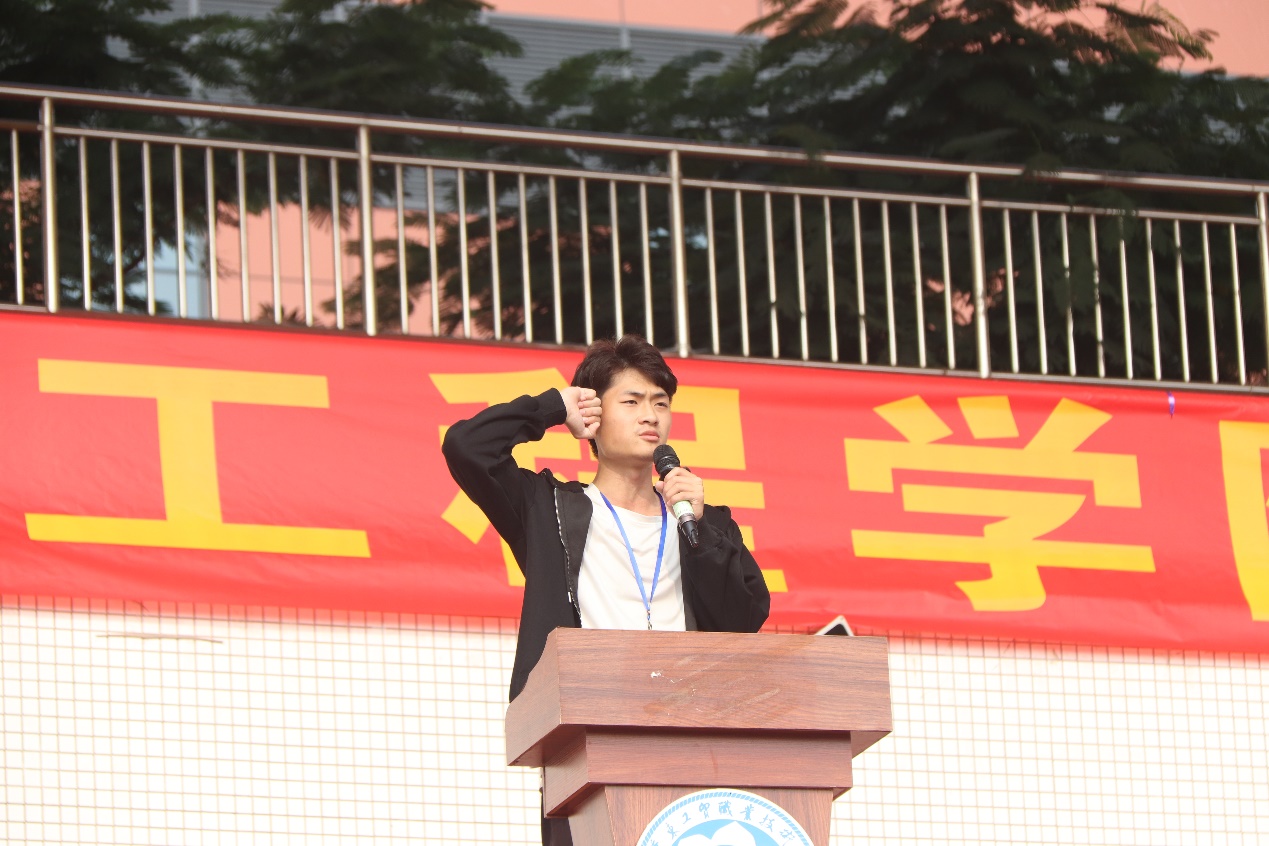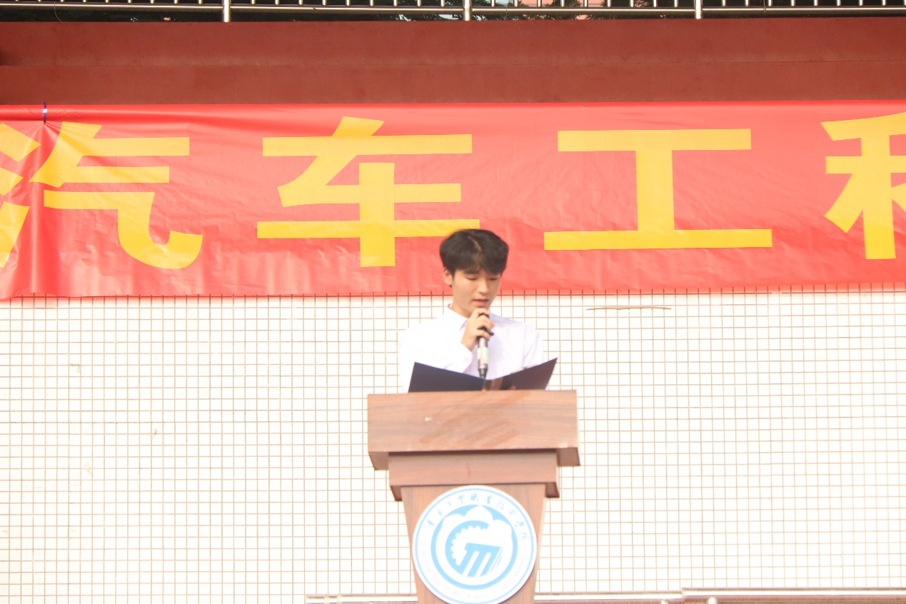 汽车工程学院辅导员黎汉清发言 接着,运动员代表管锦涛进行宣誓:我谨代表全体运动员宣誓,为了体育的光荣和本队的荣誉,我们将以真正的体育精神参加本届运动会比赛,尊重和遵守本届运动会的各项规则。尊重裁判,尊重对手,赛出水平,赛出风格,努力争取运动成绩和体育道德双丰收。