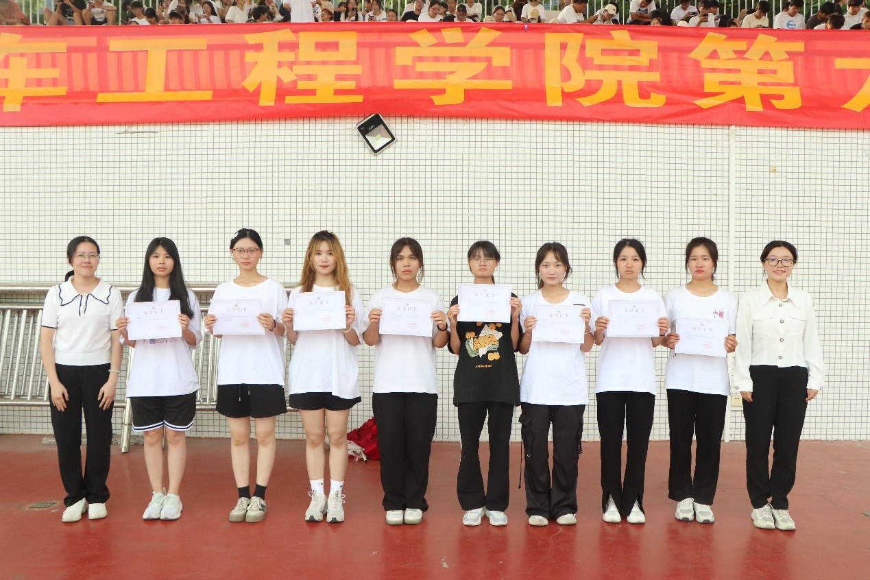 汽车工程学院辅导员黎汉清、蔡贺莹给运动员颁奖