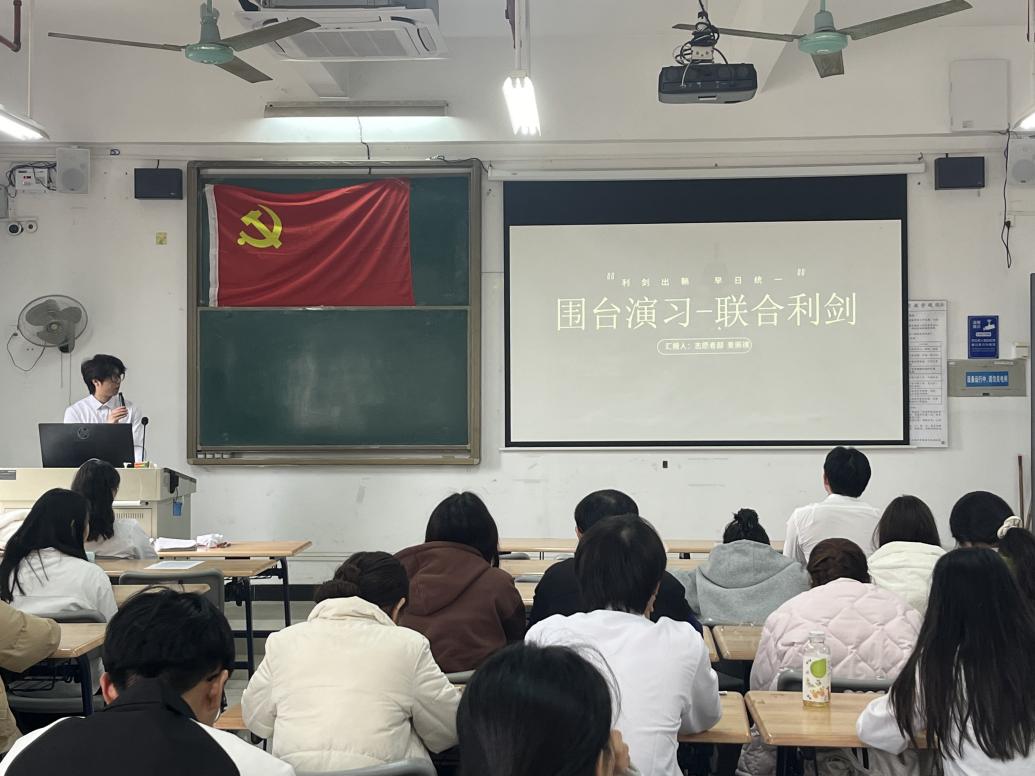 其次,麦振祺同志向大家介绍了“围台演习——联合利剑演习”,通过他的讲解,我们了解到,此次演习展现了捍卫国家主权和领土完整的坚定决心与强大实力。同时这次演习的举行,对“台独”分裂势力形成了有力震慑,有效遏制了其分裂国家的图谋,也让我们对实现祖国完全统一充满信心。