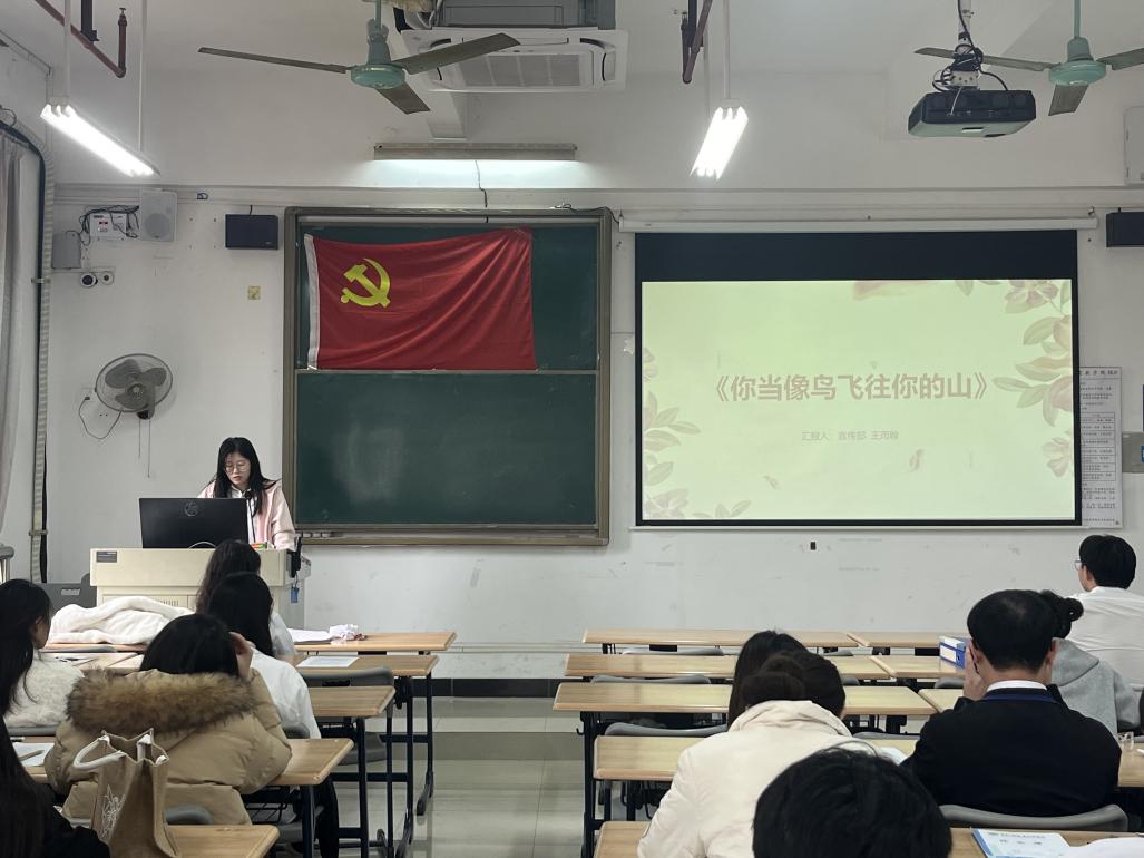 随后,王雨瀚同志为我们带来了《你当像鸟飞往你的山》一书的感悟。该书让我们了解到塔拉的成长之路布满荆棘,原生家庭的极端与偏执曾将她禁锢,可她凭借知识重塑自我。她的故事让我们明白,困境无法定义我们,知识与勇气能重塑人生。无论起点多低,只要怀揣希望、奋力振翅,终能飞往属于自己的“山”。