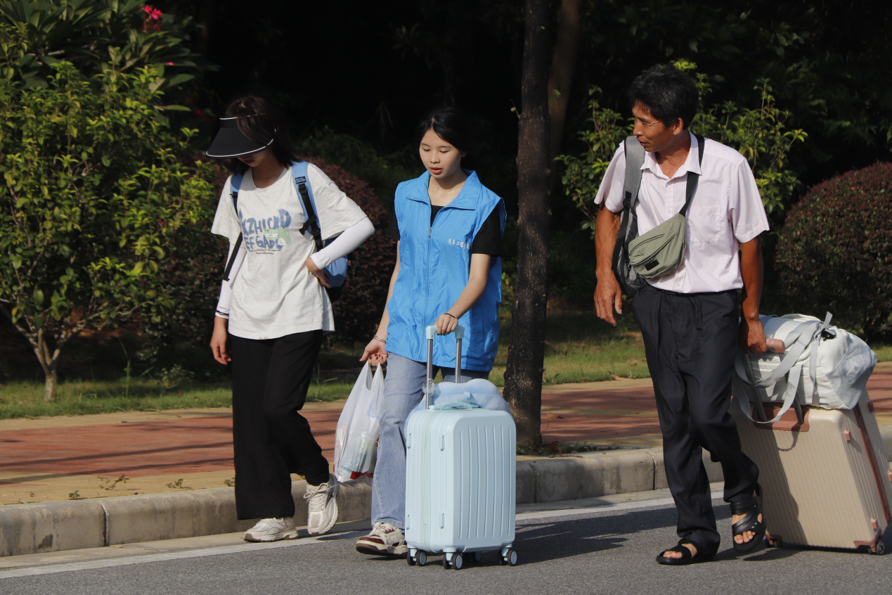 志愿者开展迎新服务 在汽车工程学院迎新现场,各环节紧密衔接,学院组织的志愿者们、党员、易班、院团委和学生会成员们都热情高涨,在校园门口、报到处等地点,为新生提供行李搬运、路线指引、报到咨询等服务,认真细致地做好各项工作。