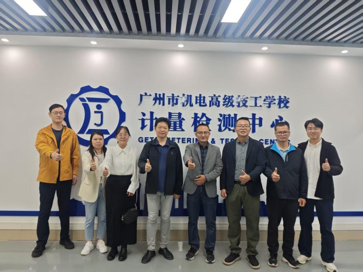图1 CNAS认证计量检测中心 广州市机电技师学院在产教融合领域成果卓著,其建设的长度类检测校准实验室已成功获得CNAS资质认证,在实验室标准化建设、体系化管理等方面的实践成果处于行业领先水平,为我院提供了宝贵范本。 在周海蔚主任的陪同下,调研团队实地参观了智能制造产业系的实训基地与已获CNAS认证的检测实验室,团队重点考察了实验室的功能分区规划、高精度设备布局、环境条件控制等核心环节,详细询问了设备选型标准、操作流程规范及质量控制体系等关键内容,深入了解其规范化建造格局与精细化管理模式。
