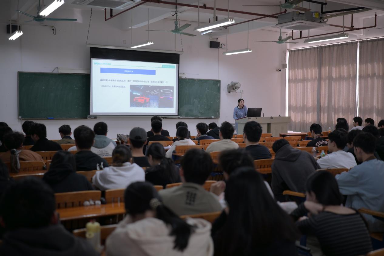 此外,为进一步打通实习就业“最后一公里”,当天下午两点,汽车工程学院在明德楼2区302和2区301开展了2025年校园招聘宣讲会,宣讲会现场座无虚席,企业代表们结合PPT演示与案例,从核心业务布局、岗位技能要求、新人培养体系到弹性工作制、项目奖金等福利逐一讲解,不少学生边听边在笔记本上标注重点。在互动环节中,学生们围绕实习与转正安排、薪资待遇等问题踊跃提问,企业代表们现场耐心解答,现场氛围活跃。宣讲结束后,学生们手持简历有序参与,高效的沟通流程既让学生快速了解企业需求,也帮助企业精准筛选人才提供了绝佳机会。