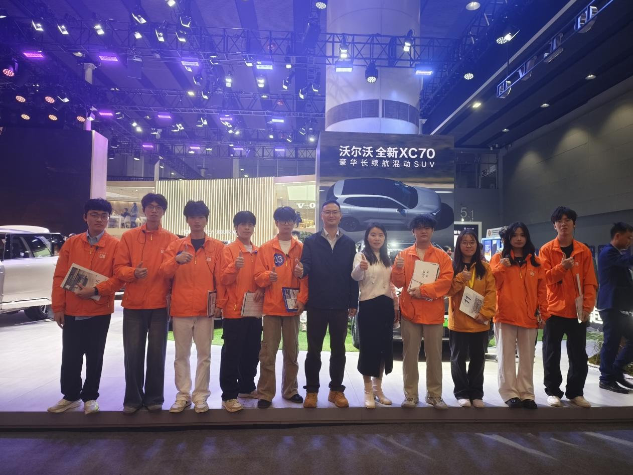 展台留影 谈及收获,同学们感触良多。24汽服3班黄悦凯同学表示,从怯于开口到主动讲解,实践锻炼了沟通能力,增强了自信。24新能源2班梁期鸿同学谈到,将课堂知识转化为讲解话术,并在与观众的交流中感受到技术传播的价值。24汽服2班梁舒健同学认为,活动锻炼了自己的领导协调能力,深刻体验了职场生活。24汽智2班吴泽敏同学分享了自己从紧张到从容的成长历程,感受到了行业的“温度”。24新能源1班王志钦同学则特别感谢了老师的全程关爱与指导,并领悟到专业技能与“人情味”同样重要。 此次广州车展之行,不仅让学生直观触摸到智能网联、电动化的行业前沿,实现了理论与实践的精准对接,也有效推动了校企合作的深化与产教融合的落地,为学院课程优化与人才培养模式改革提供了鲜活案例。学院将继续积极拓展各类实践育人平台,助力学生在汽车产业智能化变革浪潮中找准定位、提升技能,期待学子们带着展会的见闻与思考,勤学苦练,勇于创新,在未来职业道路上跑出青春的加速度。 汽车工程学院 文/蔡佳巧 图/企业、汽车工程学院 初审:钟梅 复审:王锋 终审:朱永平 |