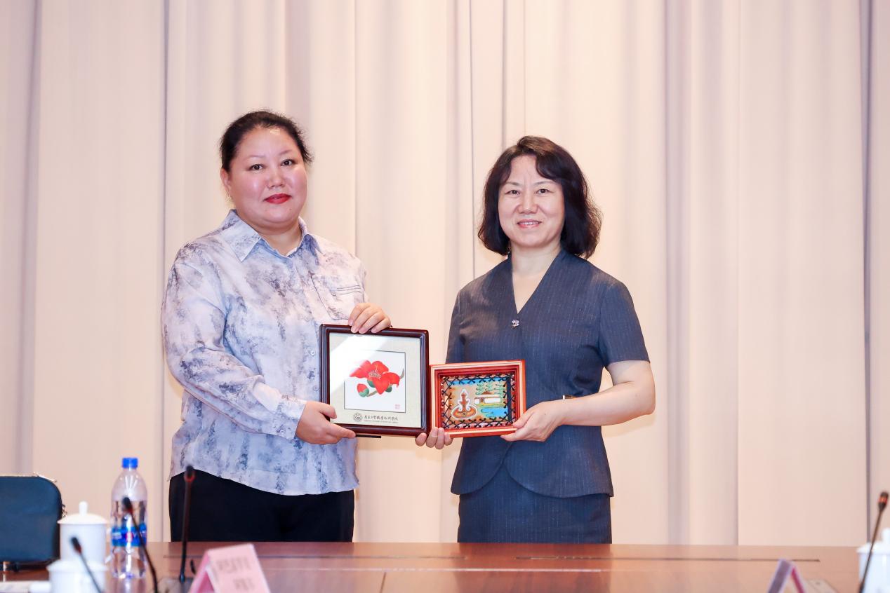 我校赵红副校长与研修班代表努尔巴耶娃·英迪拉互赠礼品