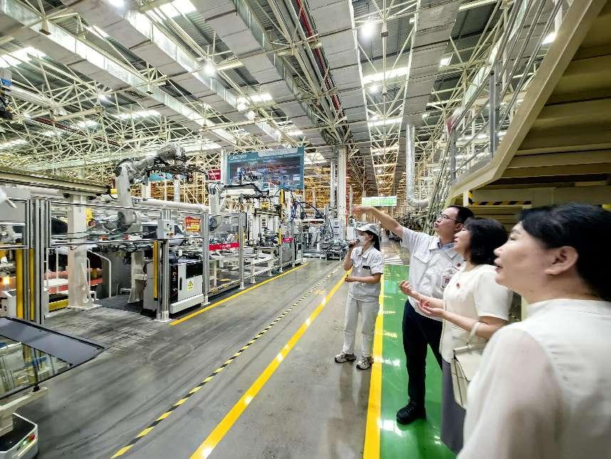 会后,在广汽乘用车有限公司综合管理部部长胡官锋的陪同下,学校赵红副校长一行参观了广汽传祺品牌体验中心、广汽传祺智慧工厂以及总装车间,讲解员详细介绍了广汽乘用车的发展历程、产业布局、核心技术、创新发展、企业文化等方面的情况。广汽传祺总装生产线设计极具前瞻性,在行业内首创的挡风玻璃全自动安装技术,通过3D视觉系统对胶型实时检测可实现多种车型共线生产。