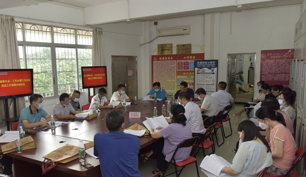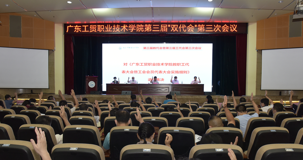2020年7月2日上午,学校第三届“双代会”第三次会议在天河校区东区礼堂召开,学校党政领导、“双代会”正式代表、列席代表参加会议。会议由学校副校长、工会主席陈珊兴主持。