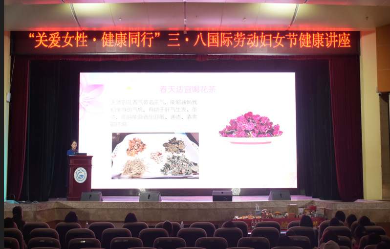 本次讲座工会邀请了广东省基层医药学会针灸学会委员王美思主治中医师,作了题为“美容养颜从春天开始”的讲座。从“职场女性常见健康问题”、“中医养生药膳与经典名方”、“家庭日常保健穴位教学”等方面介绍养生、食疗、穴位治疗等健康保健知识,现场还与女教职工进行互动、咨询、把脉问诊和穴位治疗体验,深受女教职工的喜爱和好评。工会还为女教职工准备了精美的节日小礼品,增添了女教职工的欢乐和节日氛围。