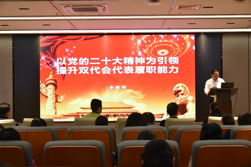 学校工会邀请了原广东省总工会干部学校副校长、广东省南华工商职业学院副院长,目前全国工会系统有影响力的专业培训教师李晓明老师,作《以党的二十大精神为引领,提升“双代会”代表履职能力》的专题讲座。 李老师围绕二十大报告精神,结合工会的职责和使命,强调当前宣传学习党的二十大精神,加强对职工的思想政治引领,是工会工作的首要任务;工会要忠诚党的事业,引导职工群众听党话、跟党走,巩固党执政的阶级基础和群众基础,是工会组织的政治责任;李老师还围绕基层工会的基本任务,提高代表履职能力、撰写教代会提案等方面做了详细解读。