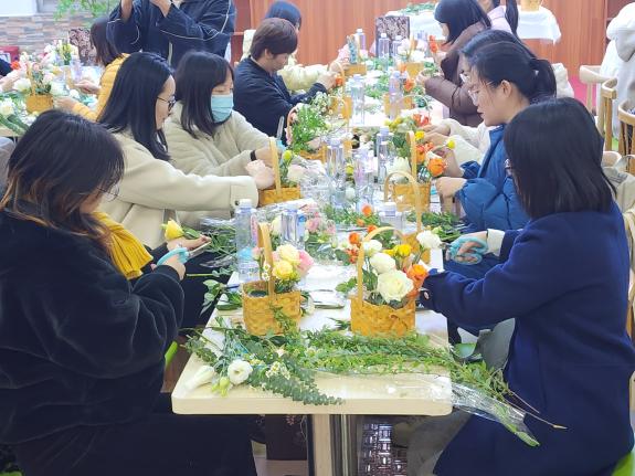 惊蛰过后,春暖花开。为庆祝“三八”国际劳动妇女节,丰富广大女教职工的精神文化生活,以便缓解工作上的压力,太阳集团城官网1407于3月7日下午在天河校区东区饭堂举办了“花样年华,财智未来”教职工女神节插花活动。活动由学校工会主办,学校女工委、中国工商银行广州景泰直街支行承办,来自学校各部门50余位女教职工参与,共赴浪漫,其乐融融。