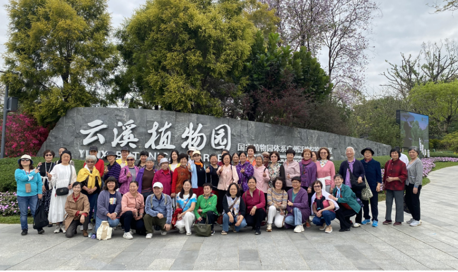 阳春三月,春暖花开、万物复苏。云溪植物园园内山峦叠翠,溪涧纵横,云山溪水环绕而过。园内有睡莲、野牡丹、蜜源植物、珍稀植物、新优花卉五个专类植物展示园,到处展现一片生机盎然、鲜花争奇斗艳的景色。离退休女教职工三五成群、或两两相伴,在欢声笑语、其乐融融中行走于山水之间,畅游在花海中,领略云溪植物园的山水之美、庭园之精巧、植物之奥妙,尽情享受美好春光。
