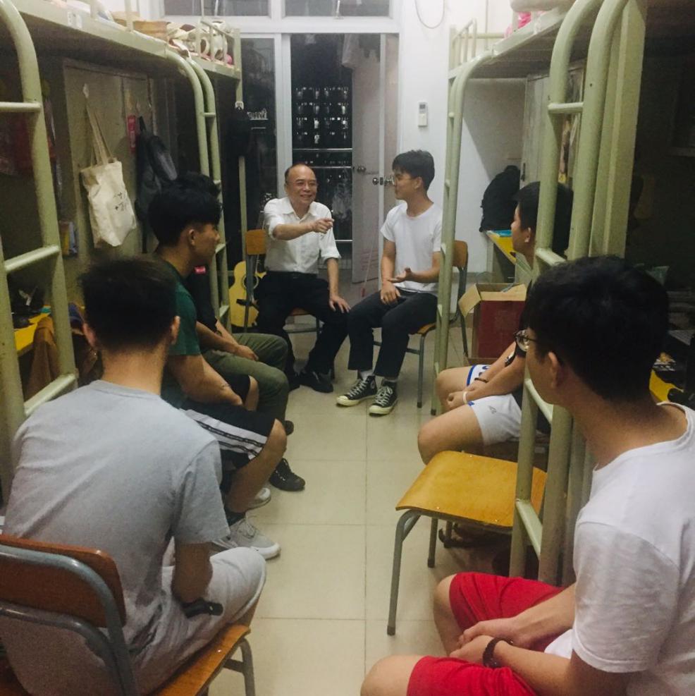 2019年5月9日星期四晚上,学校党委副书记、纪委书记夏韩辉深入18物流管理1班7栋612宿舍联系学生。