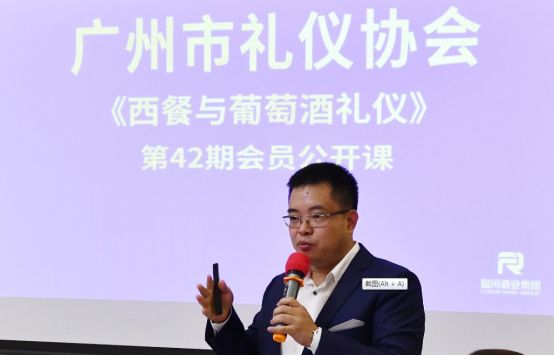 在结束了房照老师的《西餐与葡萄酒礼仪》讲座环节之后,广东富闰酒业集团创始人陈松辉先生为现场嘉宾对集团公司与个人做了介绍,宣扬了富闰集团的葡萄酒文化精髓。作为西餐的主角之一,葡萄酒起着至关重要的作用;富闰酒业集团的专业讲师李嘉明先生为嘉宾讲解了葡萄酒的分类、产地、等级以及酿造工艺,并分享了日常选购葡萄酒的技巧。
