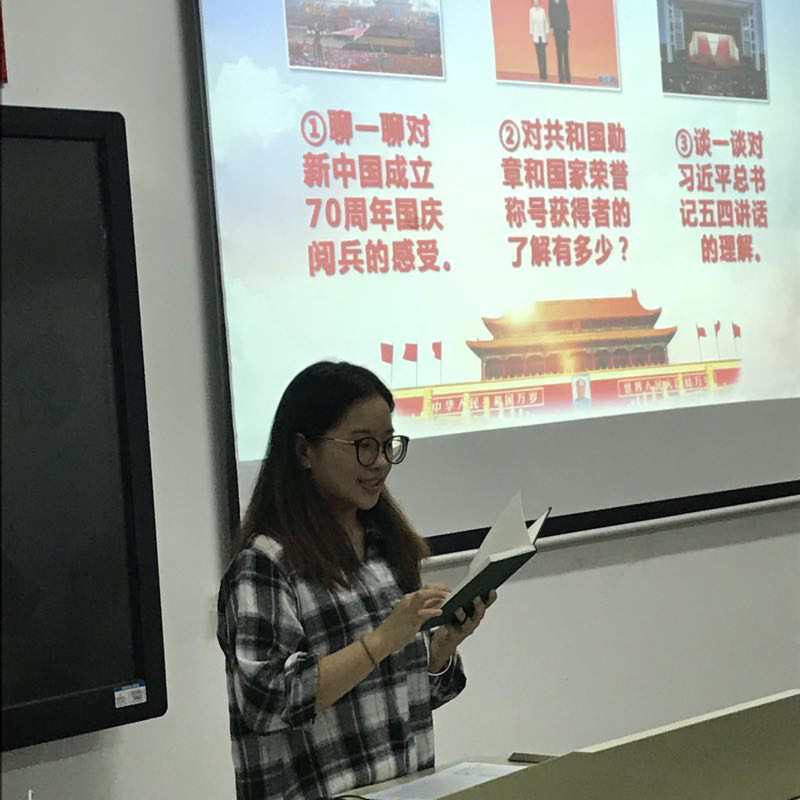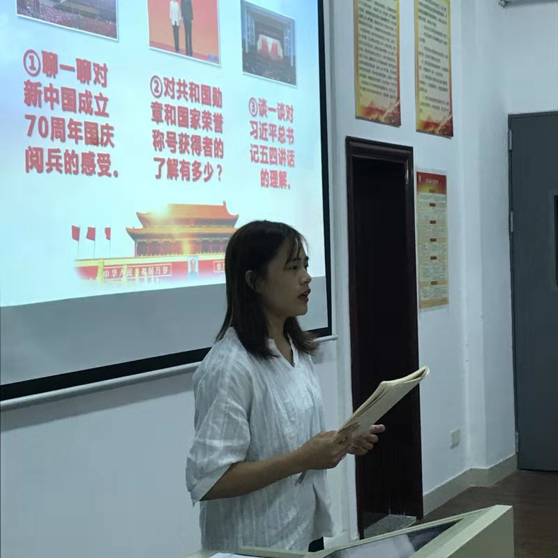 交流会上,发展对象们围绕“对新中国成立70周年国庆阅兵的感受”、“对共和国勋章和国家荣誉称号获得者的了解有多少?”和“对习近平总书记五四讲话的理解”这三个命题分小组展开讨论。最后由10名小组代表分享讨论成果。