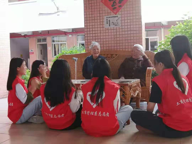 “回忆青春,多少人曾爱你青春欢畅的时辰。”大家围在一起,与老人们聊天,细心倾听他们的往事及日常生活情况,我们也谈起我们的生活,在与爷爷奶奶的交谈中,我们能感受到他们其实是很需要我们的关怀与陪伴的。他们脸上灿烂的笑容,也同样温暖着我们的心