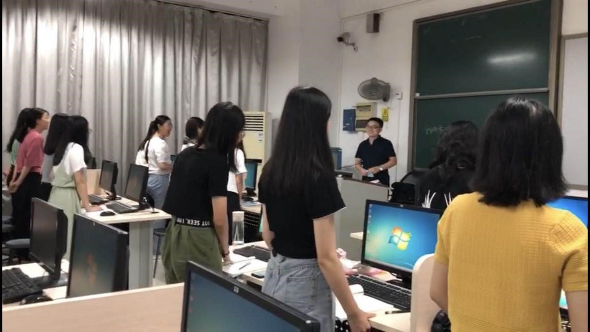上课前,随着班长的一声“起立”,同学们整齐地站起来,向老师表达节日的问候。