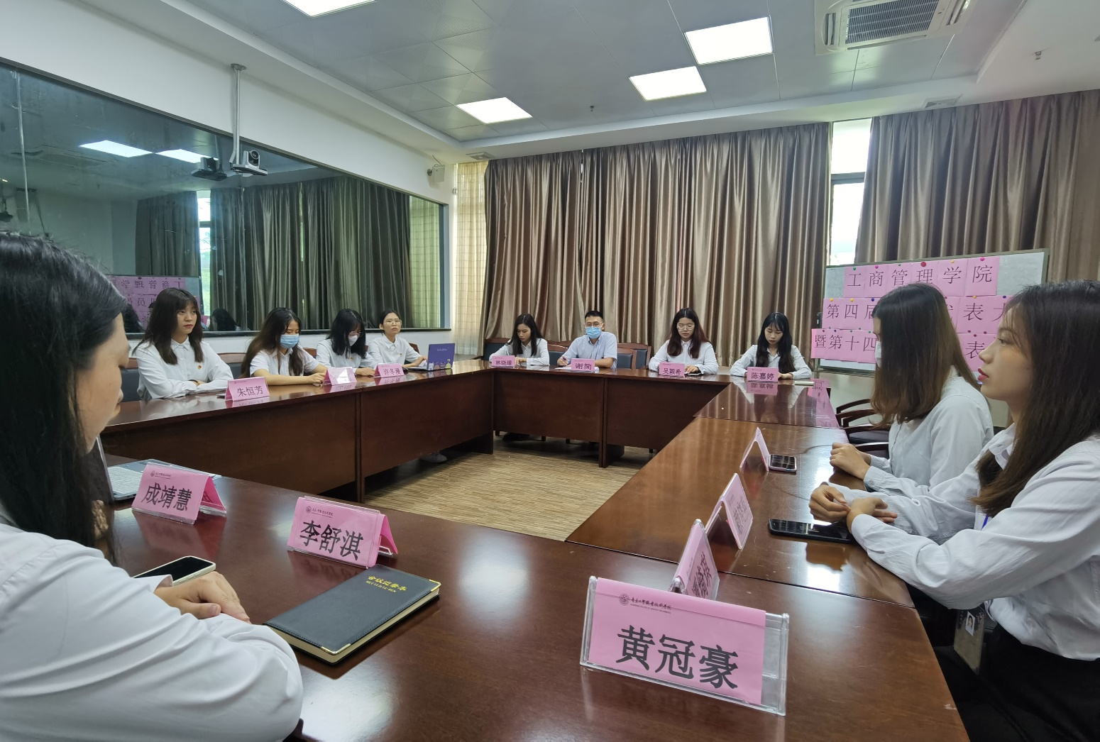 为全面贯彻落实习近平总书记在庆祝中国共产党成立100周年大会上的重要讲话精神,深入学习贯彻党的十九大精神、五四青年节习近平总书记对新时代青年的寄语精神,扎实推进学生会组织深化改革工作,加强学生干部队伍建设,更好地服务学院广大师生,工商管理学院于7月6日召开了第四届团员代表大会暨第十四届学生代表大会。受疫情影响,本次双代会采用线上、线下结合方式进行,学院党总支宣传委员兼青年委员、学生会指导老师谢简出席了在明德楼1-214举办的现场会议。