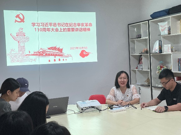 10月9日上午,纪念辛亥革命110周年大会在京举行,习近平总书记在会上发表了重要讲话。为了深入学习领悟习近平总书记重要讲话精神,缅怀孙中山先生等革命先驱的历史功勋,进一步推进学生党支部党史学习教育,激励学生党员学习和发扬革命先辈以天下为己任的广阔胸怀和为振兴中华而矢志不渝的崇高精神,9日下午4:00,工商管理学院学生第三党支部在白云校区9栋102党员活动室集中学习了讲话精神。
