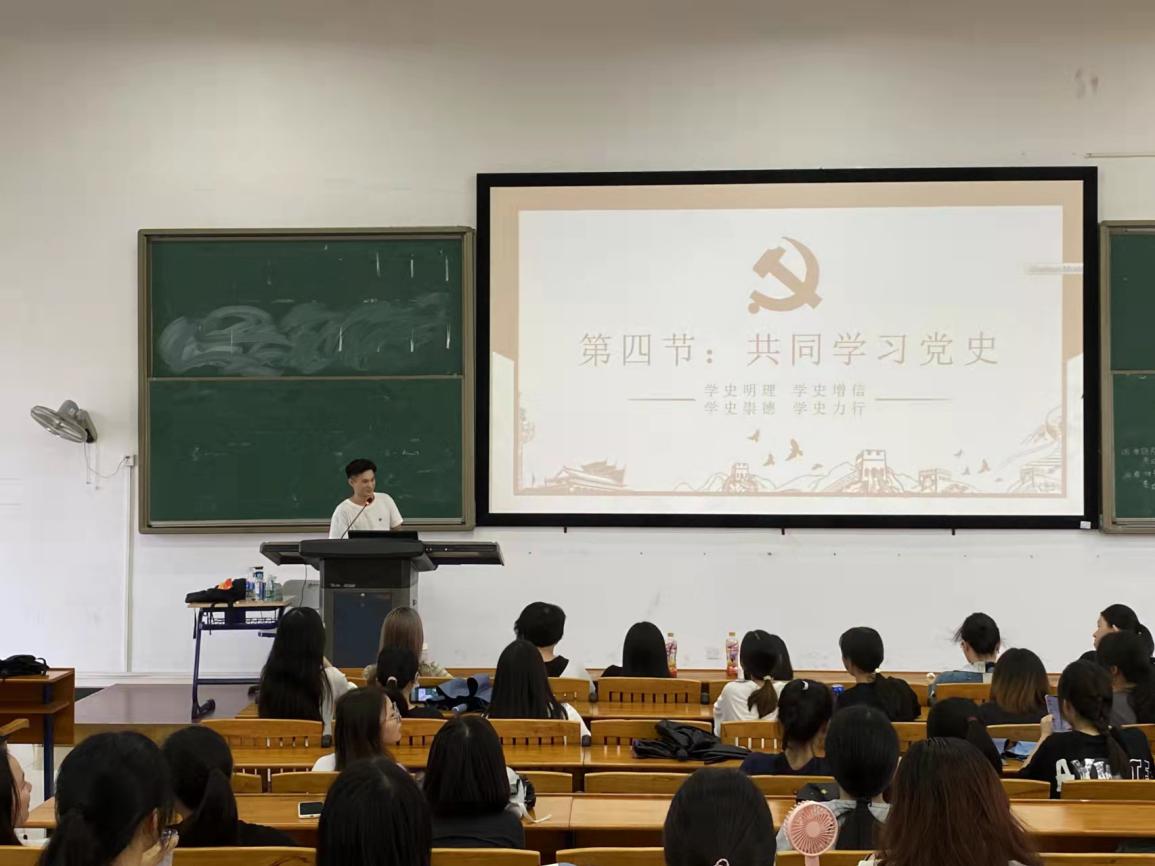 9月28日下午,为深入学习贯彻落实习近平总书记关于党史、新中国史、改革开放史、社会主义发展史学习的重要讲话和指示精神,持续深化爱国主义教育,传承红色基因,不断增强听党话、跟党走的自觉性。校学生党史宣讲团成员张跃带领工商管理学院20文秘2班团支部展开线下党史宣讲活动。