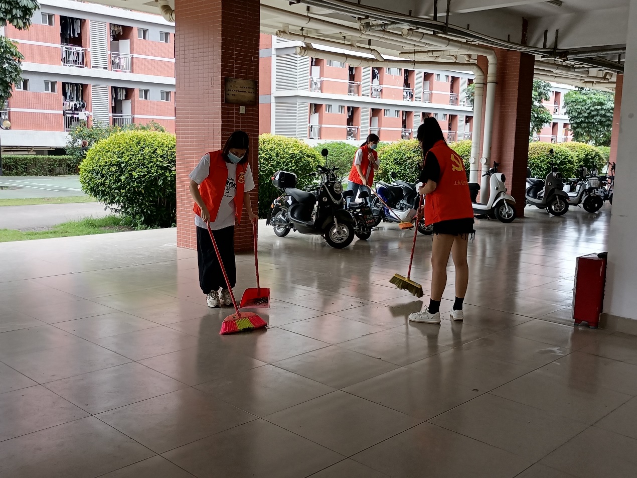 在实践活动过程中,同学们积极主动,对校园宿舍楼架空层和校道等公共区域的垃圾进行了彻底的清理,展现了发展对象的良好形象,也成为了校园里一道亮丽的风景。
