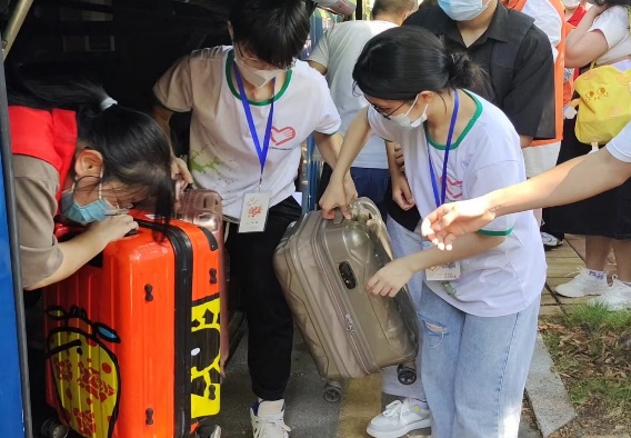 活动过程中,志愿者们统一身穿红色马甲,分工明确,相互配合,各项工作开展得紧锣密鼓、井井有条。志愿者们带着热情的微笑迎接每一位新同学,协助新生搬运行李到达校巴处,带领他们去到宿舍放行李,引导他们前往三栋架空层进行注册及报到。志愿者们的服务热情周到,言谈举止文明,给新生展现了互助友爱的精神风貌。
