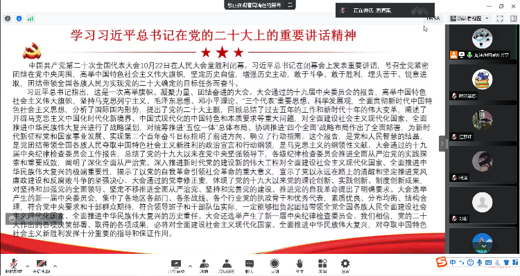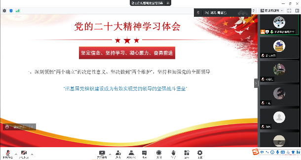会上,周清莲领学了习近平总书记在党的二十大上的重要讲话精神、党的二十大精神。随后与会人员围绕学习主题、结合工作实际畅谈学习体会。