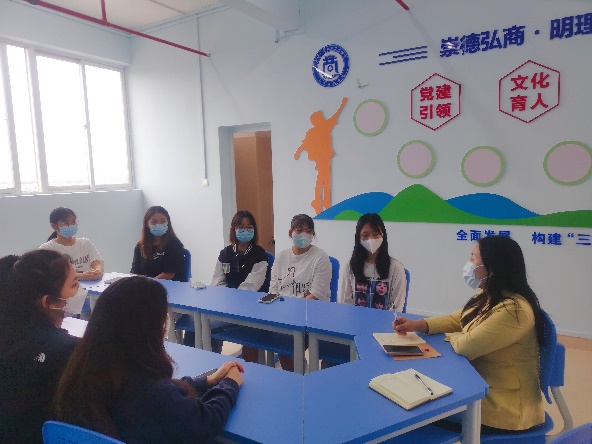 工商管理学院党总支副书记在开展学生干部座谈时,向学生传达学校防疫管理要求和精神,指出班级骨干是班风、学风的风向标。俗话说“群雁高飞雁头领”,班级骨干要铭记自身职责与使命任务,发挥好关键时刻的关键作用,树立先锋榜样,做到善于团结学生、凝聚学生力量,形成“头雁效应”。