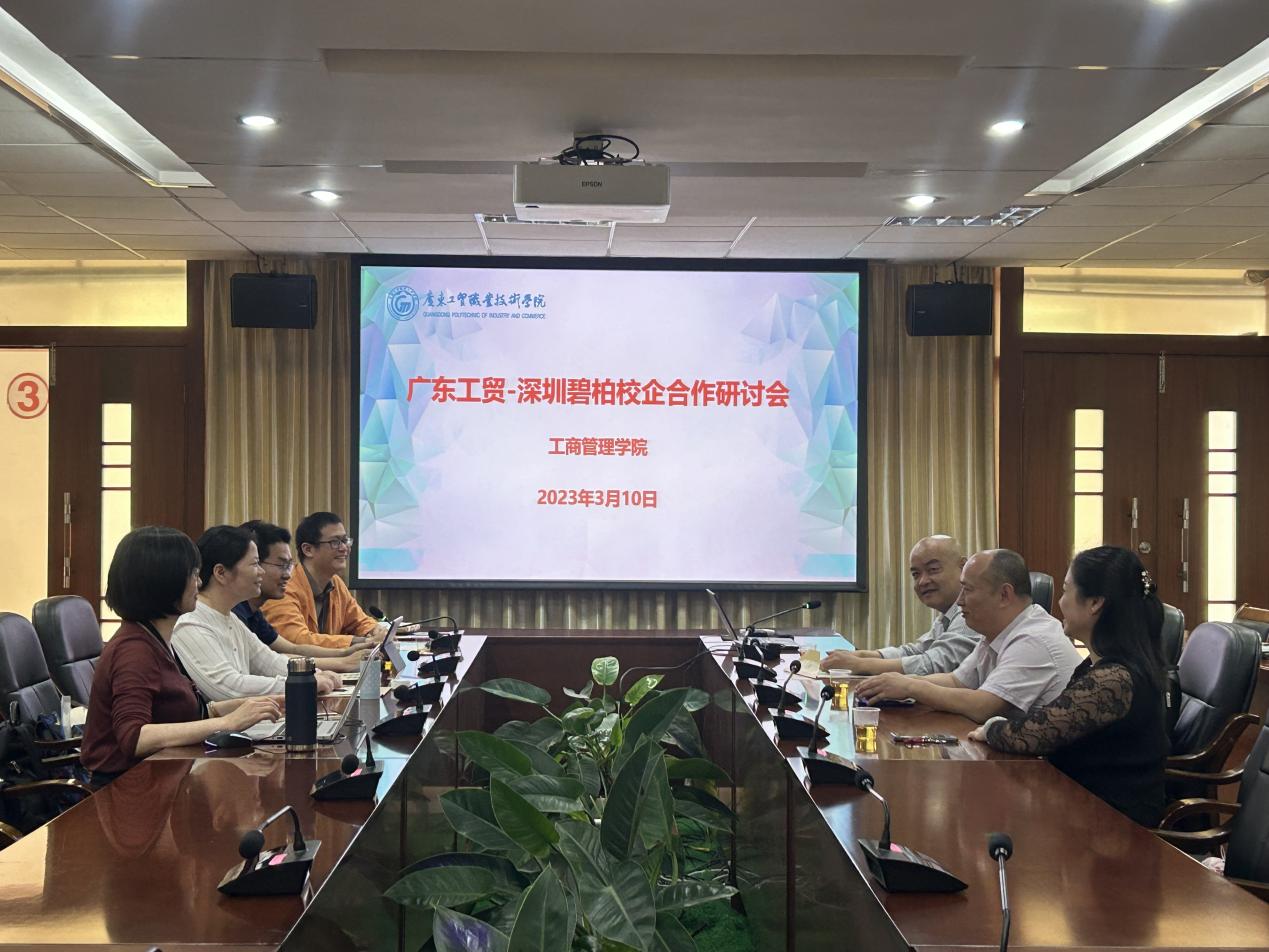 3月10日,工商管理学院在西区中心会议室召开广东工贸—深圳碧柏校企合作研究会。工商管理学院院长邹德军、财税服务系系主任胡建平、副主任邹建军、体育艺术教学部艺术教研室主任刘剑、深圳市碧柏实业股份有限公司经理屈刚等参加会议。