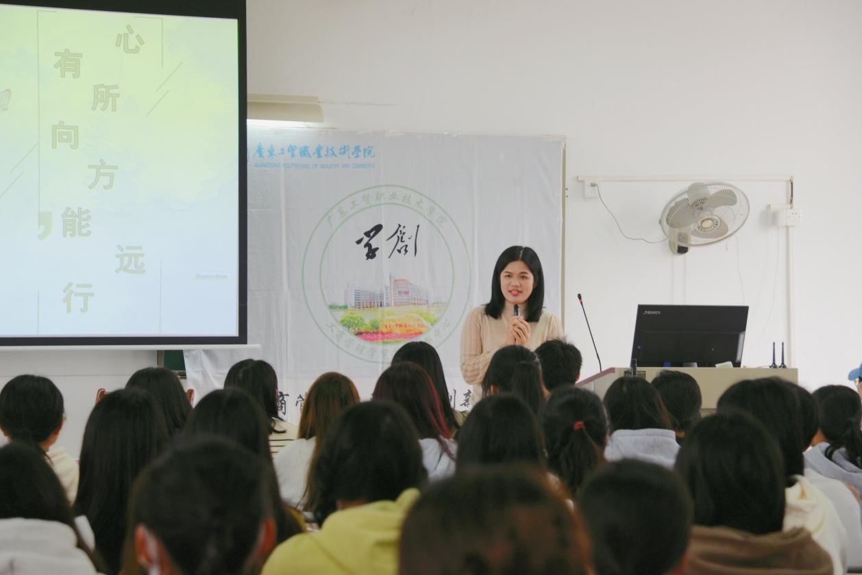 本次活动特别邀请了中国邮政储蓄银行广州分公司基层网点支行长黄金花女士作为主讲嘉宾,系工商管理学院2006届会计专业毕业生。讲座上,黄金花讲述了十几年来踏实做事的方向,分别是创新、改进和执行,她教导同学们要坚持以自新获取上进的动力,以自省迸发成长的思考,以自毅完成坚守的目标。她从坚持踏实做事的三个方向——“创新、改进、执行”和从认知、自律、人生经历和热爱四个方面,强调我们是自己时间的践行者,工作是为了更好的生活,要勇于面对未来,鼓励同学们努力去成为自己的经纪人。同时她提出远行中各项能力的提升,以保持共情,感知,审美,爱的能力以及良好的情绪,热爱生活为日后的学习成长提供方向。