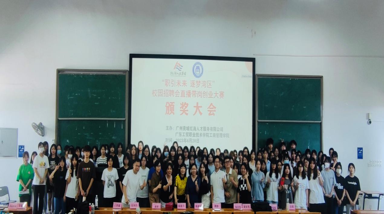 为更好地激励学生,在实训过程中还组织了“职引未来 逐梦湾区”校园招聘会直播带岗创业大赛,以赛促学。经综合评选,5个班共10个小组进入现场决赛,角逐各奖项。