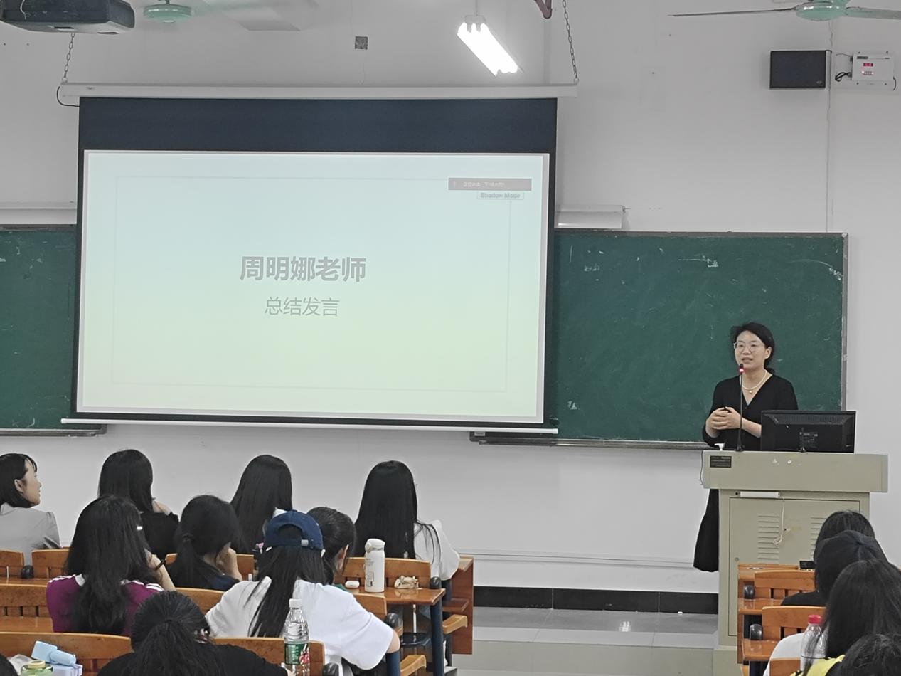 分享评比结束后,心理咨询中心周明娜对本次分享会作总结发言,她充分肯定了所有参赛选手的精彩表现,并鼓励同学们带着思考和问题读、联系自身实际读、主动拓展读,从而更深入地挖掘自身的阅读体验。脚步无法丈量的地方,书籍可以,她希望同学们能够继续保持对阅读的热爱和兴趣,与书为友,在阅读中遇见更好的自己。