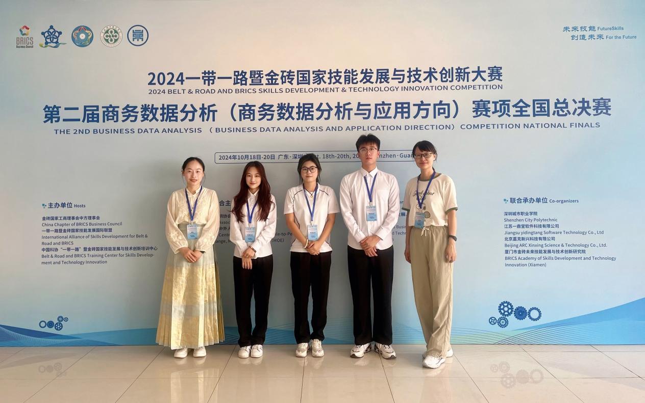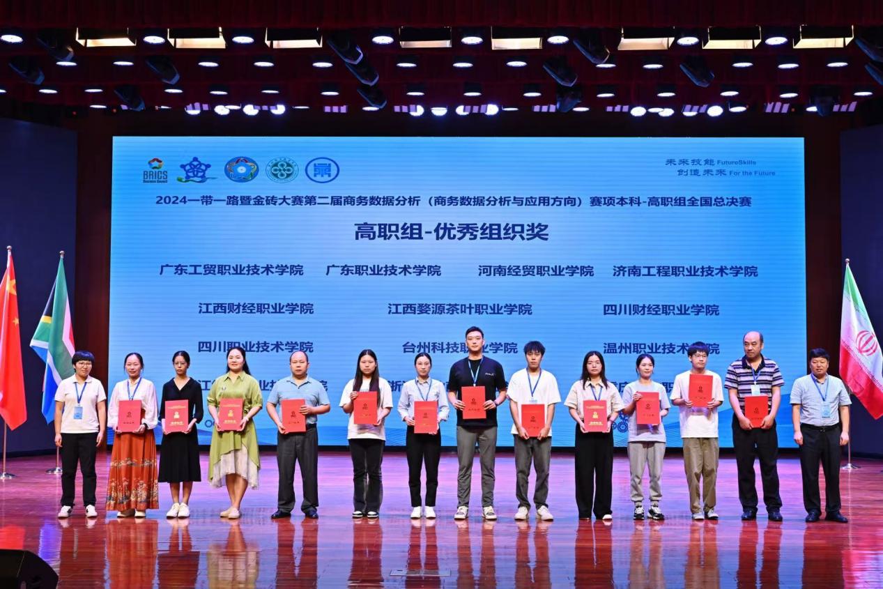 10月18日-20日,2024一带一路暨金砖国家技能发展与技术创新大赛商务数据分析(商务数据分析与应用)赛项全国总决赛在深圳城市职业学院举行,我校由工商管理学院23工商企业管理专业1班吴霖熙、22人力资源管理专业2班谢静容、23商务管理专业2班许嘉煜三位同学参赛的队伍荣获高职组二等奖,学校荣获优秀组织奖,代月平、李王芳老师荣获优秀指导教师奖。
