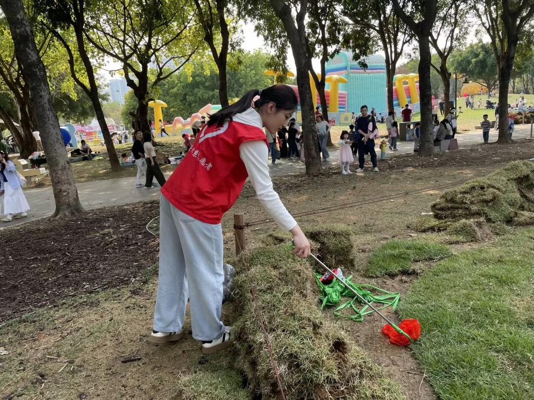志愿清扫,共筑清新环境。志愿者们仔细清理公园地面垃圾,哪怕草丛中隐蔽的垃圾也不放过,他们用实际行动守护公园的美丽,为公园整洁的环境贡献力量。
