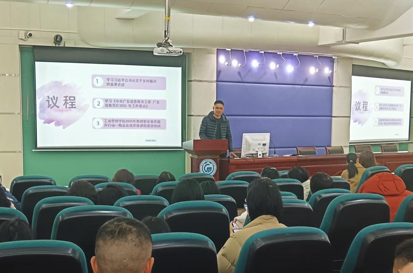 4月1日下午,工商管理学院在天河校区西区报告厅召开教职工政治理论学习会。会议由工商管理学院党总支副书记谢宏祥主持,学院全体教职工参加。
