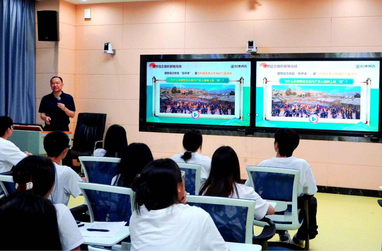 陈斌聚焦社会主义文化建设主题,以三个鲜明板块展开深入阐述。“强塑国魂担当历史使命”,他强调文化是民族生存发展之魂,必须筑牢国家文化安全根基;“非凡成就彰显实践伟力”,他特别以动画电影《哪吒》为例,生动展现了中华优秀传统文化创造性转化、创新性发展的巨大活力与全球影响力;“坚定文化自信开启时代华章”,他强调要坚定文化自信,坚持守正创新,激发全民族文化创新创造活力。授课现场互动热烈,学生们积极参与讨论。