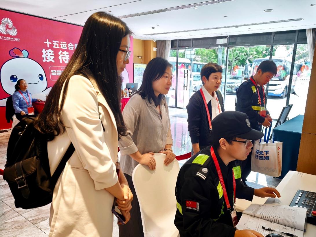 座谈结束后,学院领导与老师们前往一线岗位,实地察看学生们的工作环境。“这个岗位的主要职责是什么?”“工作累不累?”“有没有什么困难?”……每到一处,老师们都与同学们深入交谈,仔细了解工作强度、人岗匹配度与实际困难。走访过程中,志愿者王笑笑深有感触地分享道能够参与第十五届全运会的安保志愿服务,是我人生中一段无比光荣的经历,更是一场意志与技能的双重淬炼,‘平安全运’这四个字对我而言已不仅是口号,而是刻骨铭心的责任与使命。”