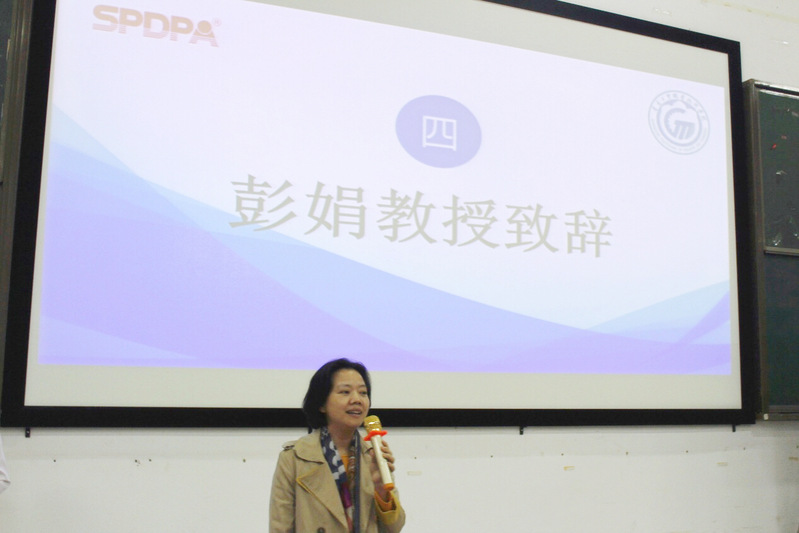 接下来是市场营销专业带头人彭娟教授致辞。彭娟教授就双方校企合作期间的整体思路、总体设计以及当中获得的成绩给大家做了汇报。
