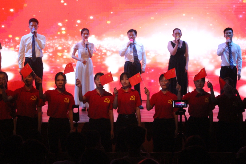 为庆祝新中国成立70周年并全面贯彻落实党的十九大精神,以习近平新时代中国特色社会主义思想为指导,进一步激发广大青少年的爱国热情,坚定跟党走中国特色社会主义道路的理想信念,党委宣传部于2019年6月13号晚7:00在白云校区演艺中心开展中华经典朗诵会活动,经济贸易学院的“青春飞扬队”参加了比赛,朗诵队伍成员有:李艇老师,曾亚青,温晓利,余文斌,卓振威,谢玉彬,党总支副书记龚云、学工办主任黄小奇、辅导员章少重、吴海英也参与了比赛。