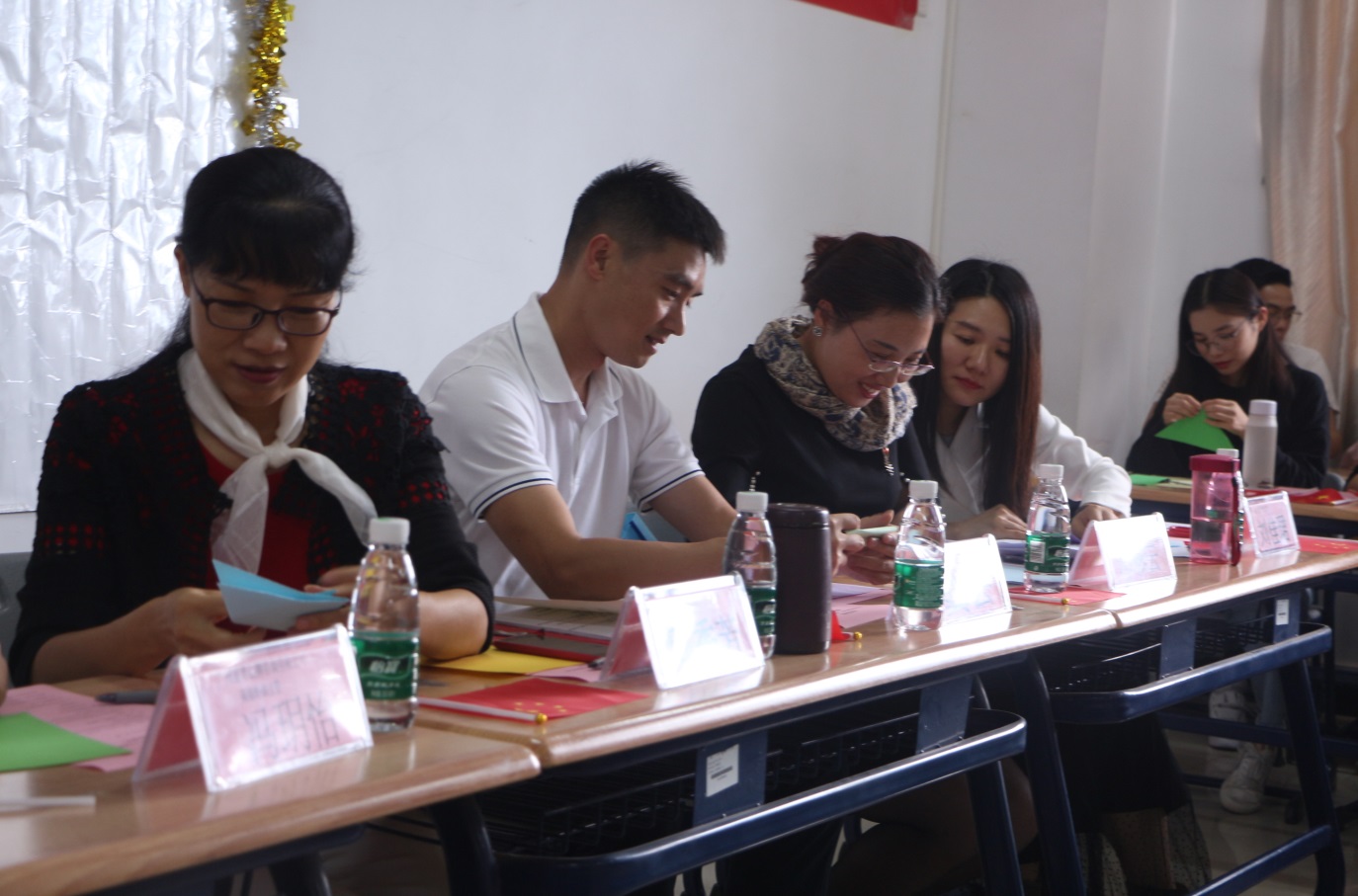 全体师生进行剪纸、剪窗花活动。 一张张彩色的纸在一双双巧手来回的折叠,一把把剪刀轻轻裁出一幅幅精美的图案。